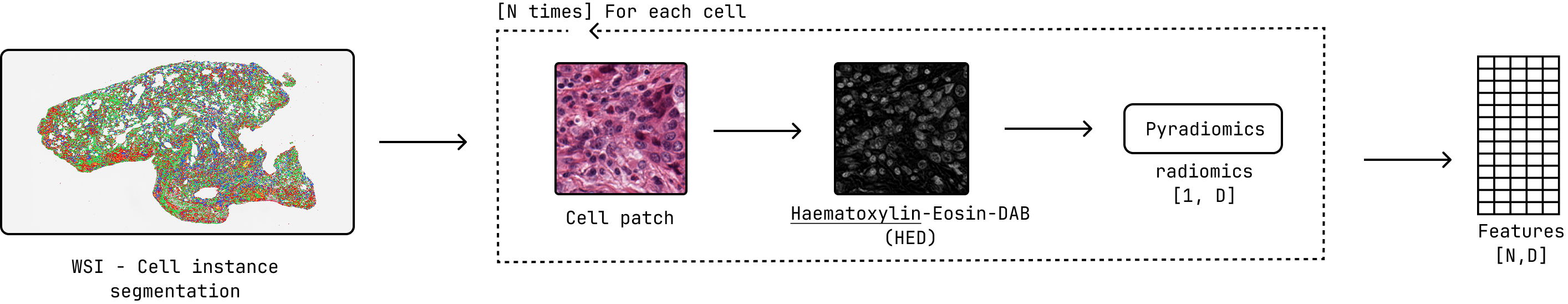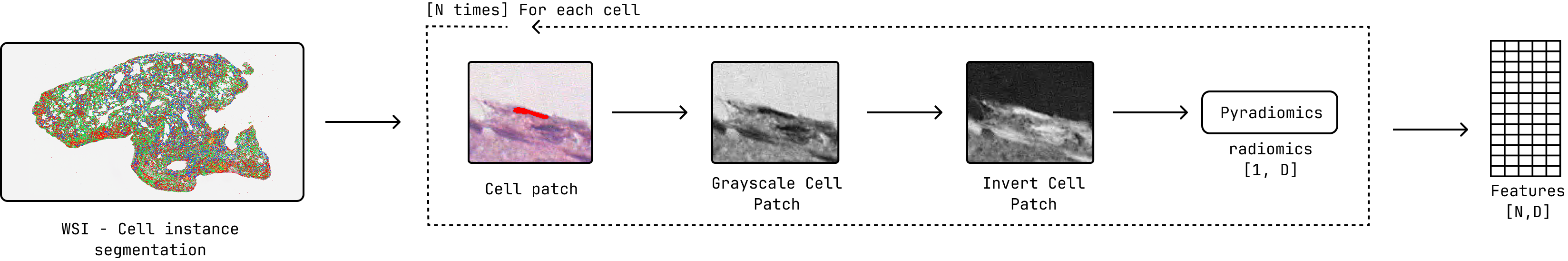 pyradiomics_gray: Comprehensive radiomics features with gray-scale preprocessingpyradiomics_hed: ⭐ Recommended. Radiomics features from Hematoxylin channelpyradiomics_hue: Radiomics features with Hue channel preprocessingmorphometrics: Morphological shape features