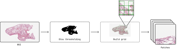 The patch extraction tool is the first step in the pipeline. It extracts patches from whole slide images (WSI) with configurable parameters for downstream analysis.
